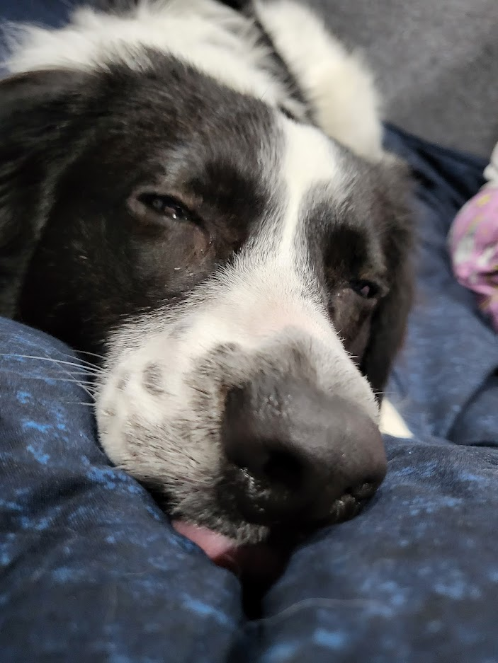 The owner / manager came over and helped me unhitch the caravan and get myself sorted, and as I was attempting to push the caravan up a tiny hill so he could hitch it back to my car, there's my cousin asking if I need a hand! Never been happier to see him! We get up to the pitch now without incident and I attempt to reverse into place... nearly got it, but got close enough, and into my parents' campervan for a cuppa with my cousin, his daughter, Hannah and my parents. Moxie had a nap on the campervan floor while we relaxed.
