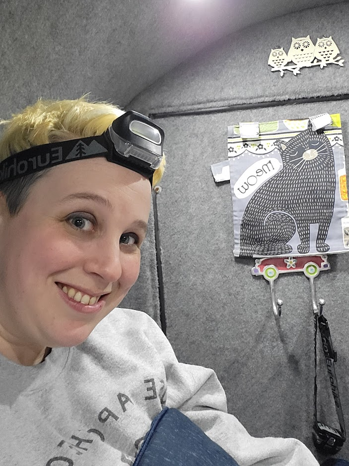 About half an hour later and the water still hadn't boiled so I tipped a bunch of it out, half an hour after that and Hannah and Moxie came out to join me waiting for the kettle to boil... it never did. We just gave up and had hot-ish water in our tea/coffee - AND IT WAS LOVELY. We popped back into the warm to drink our cuppas and get all cosy again. Once it was a reasonable hour we went over to the campervan to grab some toast and another cuppa.