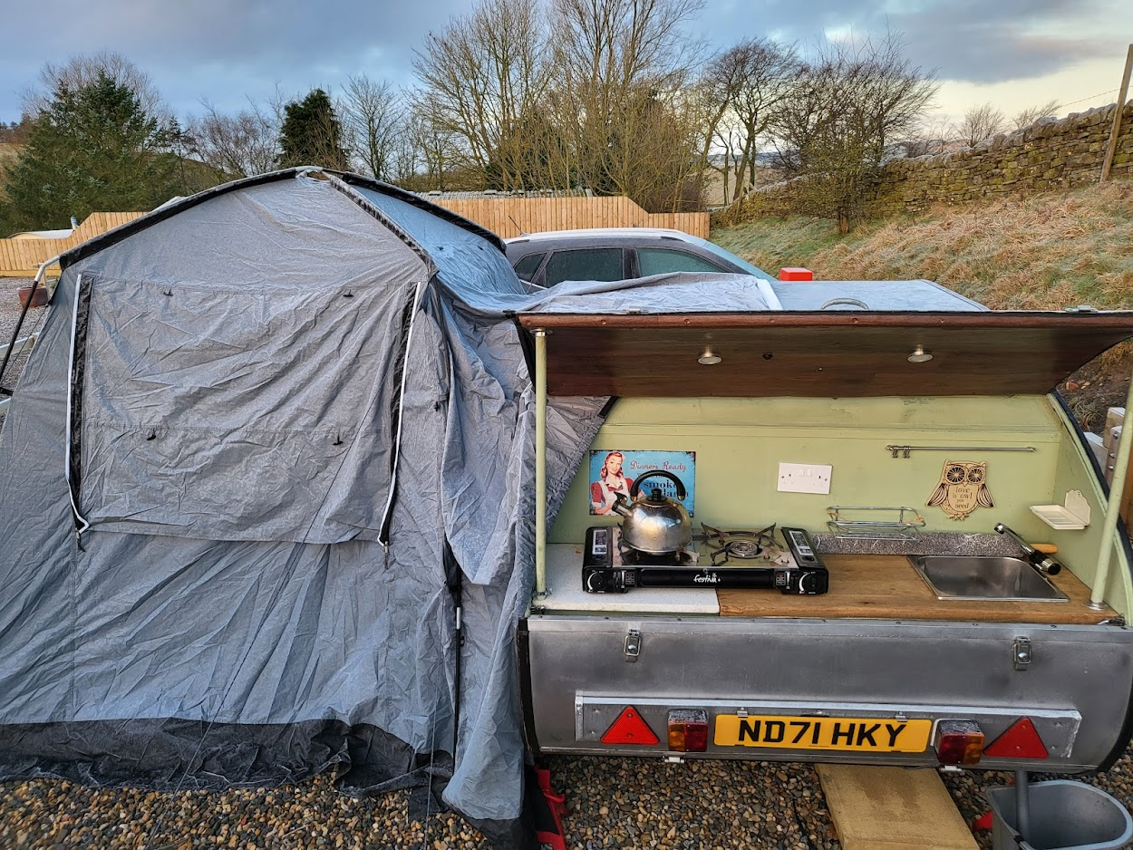 The camp site was only an hour from home as I wanted my first towing experience to be an easy one. We spent the morning packing and getting the caravan hooked up to my car, I have a removable towbar that only seems to click into place if I have the instructional video on my phone at the time! We popped Moxie in the boot and got everything in the car!
